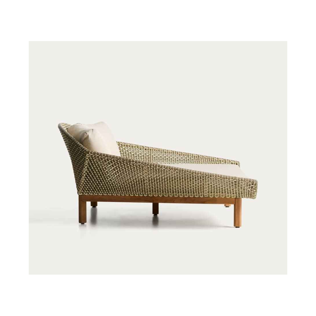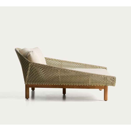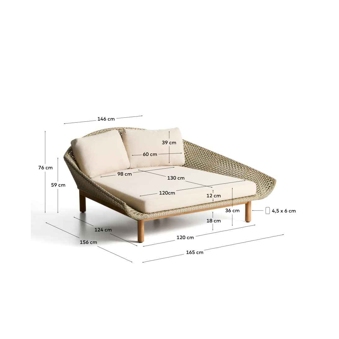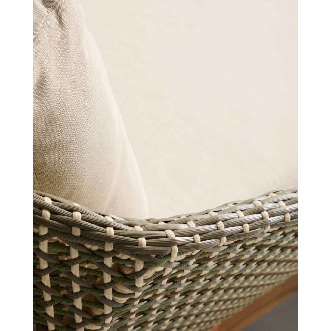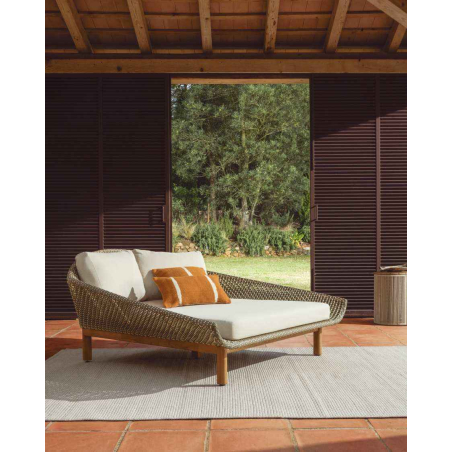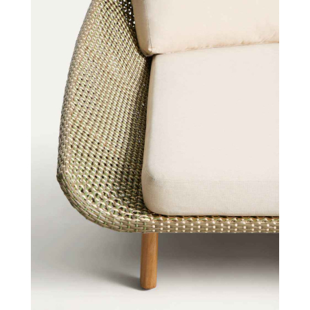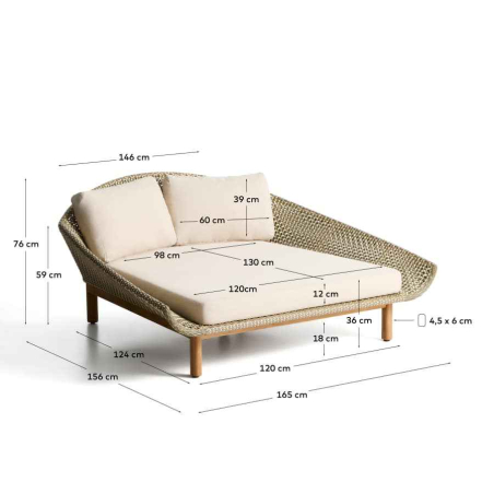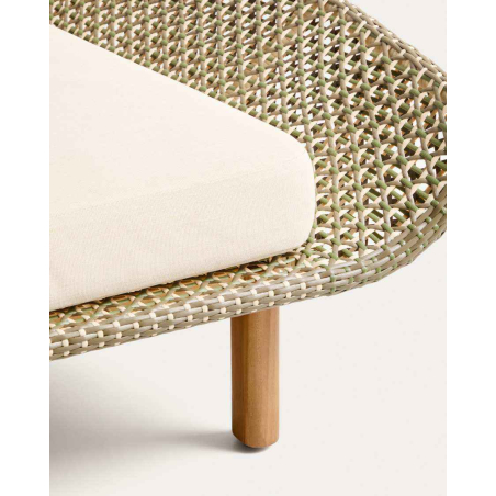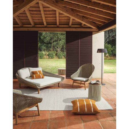 Každý detail Olbie odráža dokonalú rovnováhu estetiky a funkčnosti outdoorových kúskov. Teaková štruktúra a ručne tkaná syntetická ratanová väzba dodávajú textúru a teplo, zatiaľ čo lanová šnúra chránená pred UV žiarením zaisťuje odolnosť voči každodennému používaniu. Vankúše, ktoré sú navrhnuté tak, aby vám poskytovali pohodlie, majú odnímateľné poťahy, vďaka ktorým sa ľahko čistia. Pena a vodoodpudivá tkanina ich robia vhodnými do vonkajších priestorov. Pre zachovanie dreva odporúčame aplikovať výrobky na starostlivosť o teakové drevo dvakrát ročne. Sedadlo a operadlo sú ručne tkané z lanovej šnúry odolnej voči UV žiareniu. Teakové drevo toleruje vlhkosť a mikroorganizmy odvodené od vlhkosti a je vysoko odolné a odolné v krytom vonkajšom prostredí. Vrátane odnímateľných vankúšov.