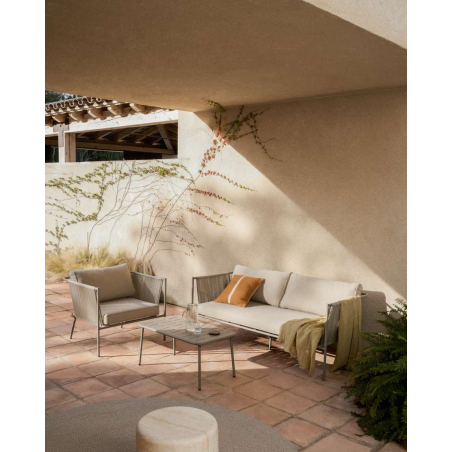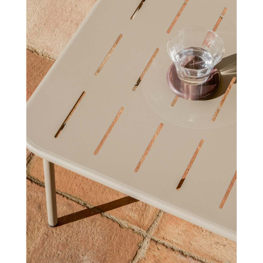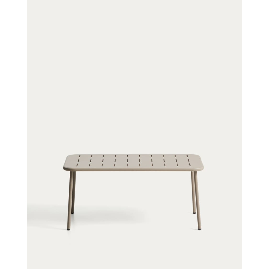 Vonkajší konferenčný stolík Zivia z ecru pozinkovanej ocele. Jeho pozinkovaná oceľová konštrukcia ponúka vynikajúcu odolnosť proti oderu a korózii, čo zaisťuje jeho trvanlivosť tvárou v tvár nepriaznivému počasiu a neustálemu používaniu. Plastové chrániče nôh zaisťujú, že podlaha zostane nepoškvrnená, bez rizika poškriabania alebo poškodenia. Vhodný do vnútorných a vonkajších priestorov.