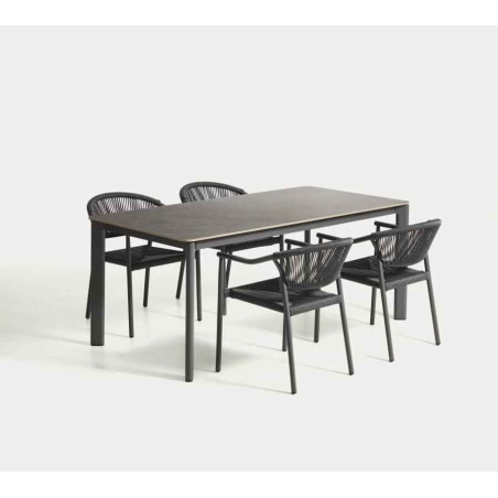 Súprava ANAFI pozostáva zo stola so sintrovanou kamennou doskou a 4 stohovateľných stoličiek LIVADIA s hliníkovou konštrukciou a sedadlami z ručne tkaného syntetického lana, pričom je navrhnutá na interiérové aj exteriérové použitie. Stolová doska zo sintrovaného kameňa je odolná voči poškriabaniu, škvrnám aj vysokým teplotám a zachováva si svoje vlastnosti aj pri dlhodobom používaní. Hliníková konštrukcia stola aj stoličiek je ľahká, pevná a odolná voči korózii, UV žiareniu aj každodennému zaťaženiu. Stoličky ponúkajú komfort vďaka odolnému ručne tkanému lanu, sú stohovateľné pre jednoduché skladovanie a majú chrániče nôh na ochranu podlahy a lepšiu stabilitu. Kolekcia spĺňa náročné testy odolnosti, vďaka čomu je vhodná aj na intenzívne používanie.