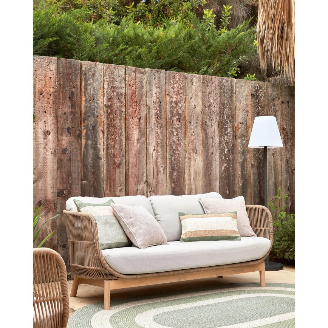 Séria CATALINA naplní vaše vonkajšie priestory tropickým štýlom. Vyniká svojim detailným dizajnom s pevným udržateľným rámom z akáciového dreva. Trojmiestna pohovka vyrobená z masívneho akáciového dreva a ručne tkaného polyesterového lana, s UV odolnosťou. Vhodné pre vnútorné aj zastrešené vonkajšie použitie. Vankúše s odnímateľnými poťahmi.