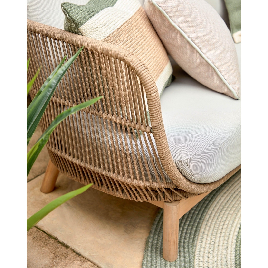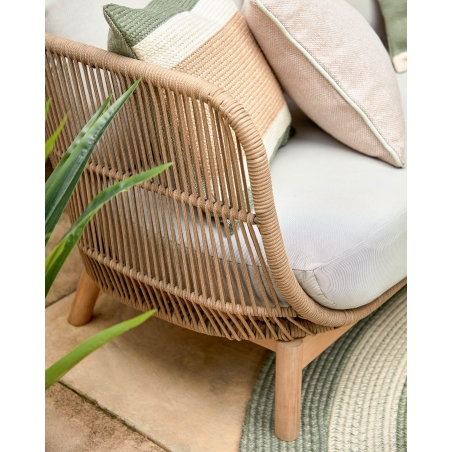 Seria CATALINA naplní vaše vonkajšie priestory tropickým štýlom. Vyniká svojim detailným dizajnom s pevným udržateľným rámom z akáciového dreva. Kreslo vyrobené z masívneho akáciového dreva a ručne tkaného polyesterového lana, s UV odolnosťou. Vhodné pre vnútorné aj zastrešené vonkajšie použitie. Vankúše s odnímateľnými poťahmi.