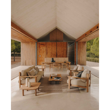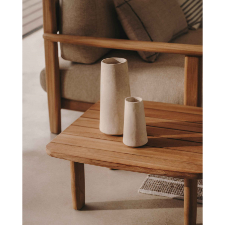Konferenčný stolík Tirant vyrobený z masívneho teakového dreva 100% FSC. Kolekcia Tirant s jednoduchými tvarmi, no sršiacimi osobnosťou, je inšpirovaná japonskými štruktúrami, ktoré zvýrazňujú blízkosť, teplo a pohodlie dreva pre chvíle oddychu. Drevo so 100% certifikáciou spotrebiteľského reťazca FSC a pochádzajúce z modelu zodpovedného lesného hospodárstva. Možno kombinovať so zvyškom kolekcie. Vhodný do vnútorných a vonkajších priestorov.