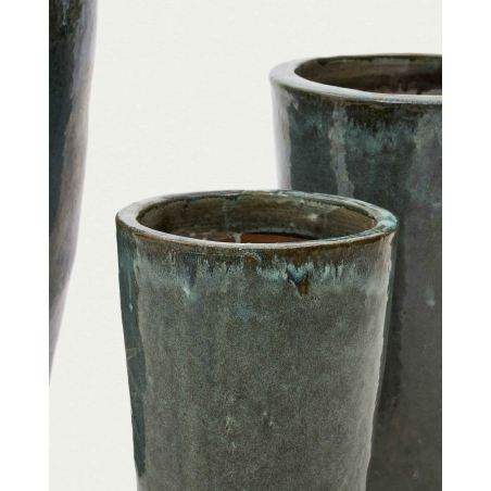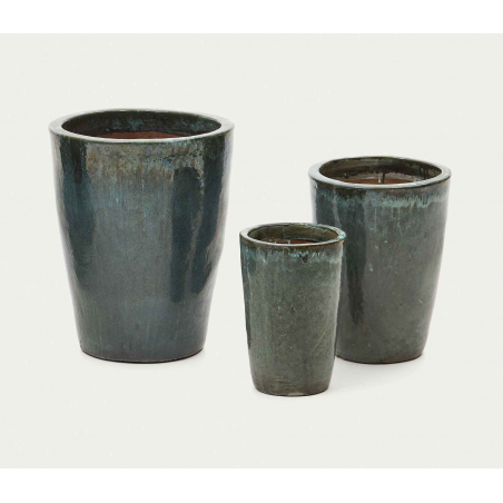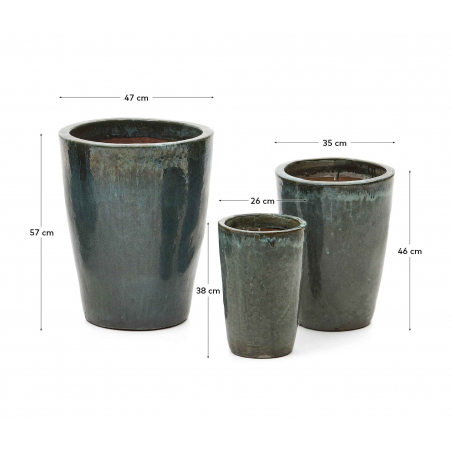 Rotja sada 3 terakotových kvetináčov s glazúrovanou modrou povrchovou úpravou. Prírodný materiál, ktorý vďaka svojej priedušnosti pomáha kontrolovať vlhkosť pôdy. Sú odolné voči vlhkosti, rôznym poveternostným podmienkam a extrémnym teplotám. Vhodné do vnútorných a vonkajších priestorov.