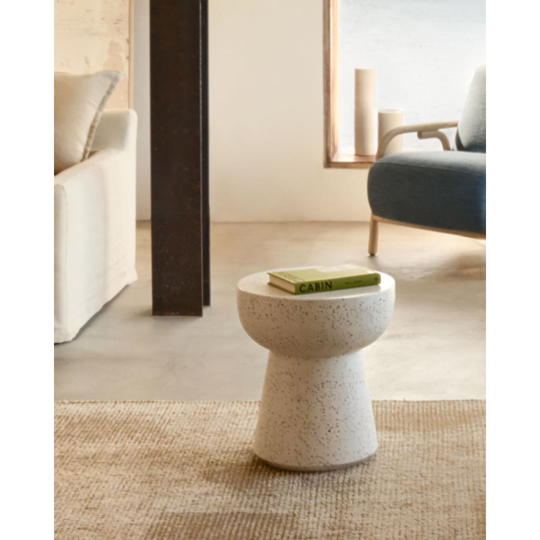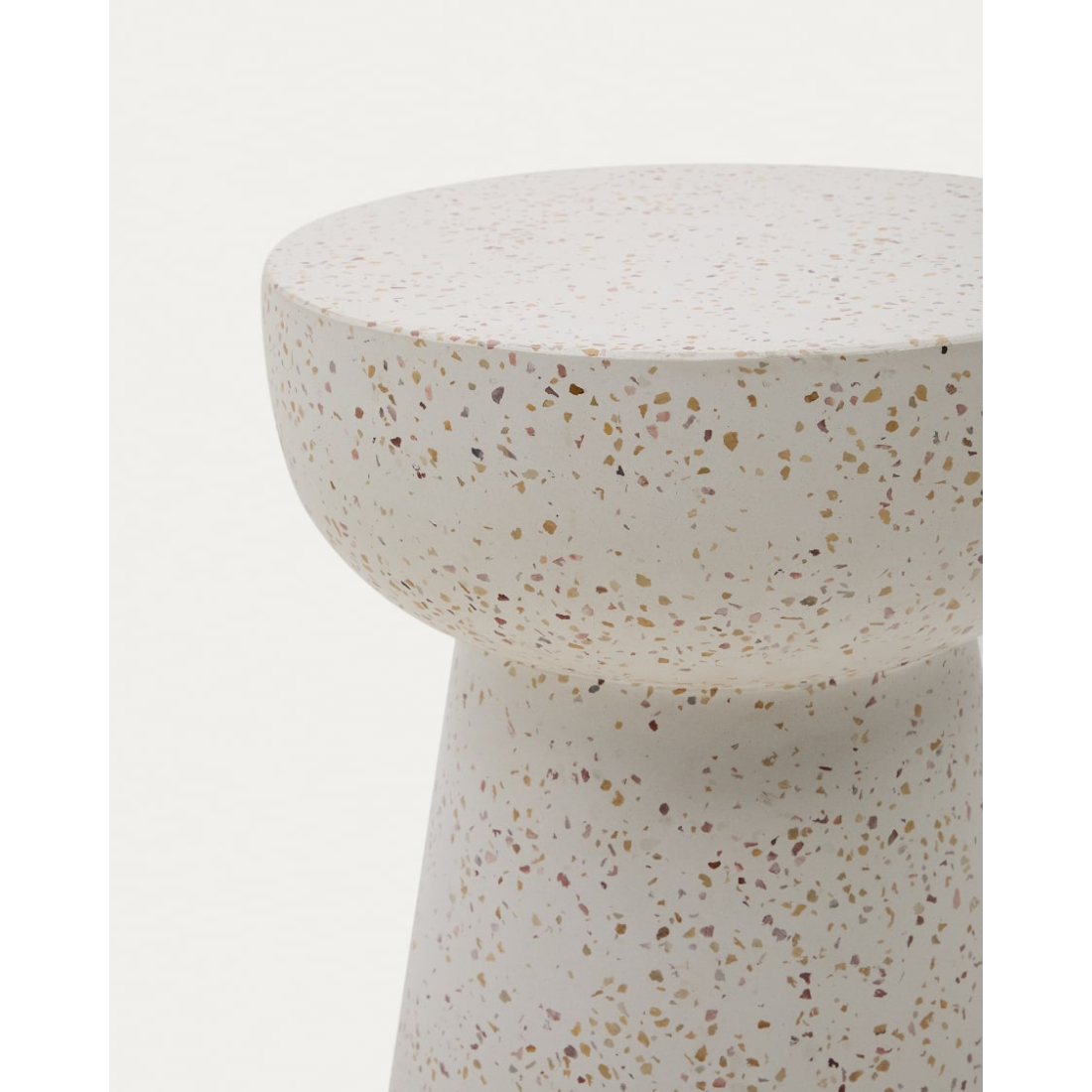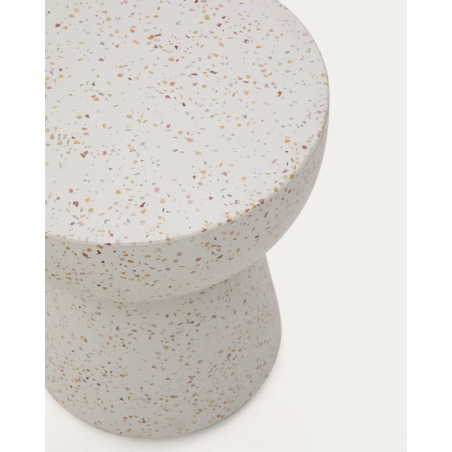 Príručný stolík Pada biely terazzo. Pada čerpá inšpiráciu z minimalistického štýlu na vytvorenie dizajnového prostredia vo vašich vonkajších a vnútorných priestoroch. Je odolný voči poveternostným vplyvom a ideálny na celý rok. Vhodný do vnútorných a vonkajších priestorov.