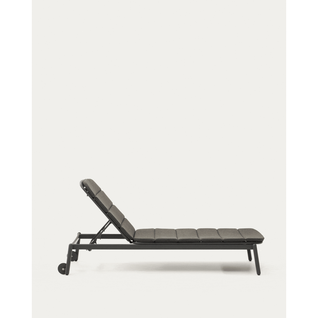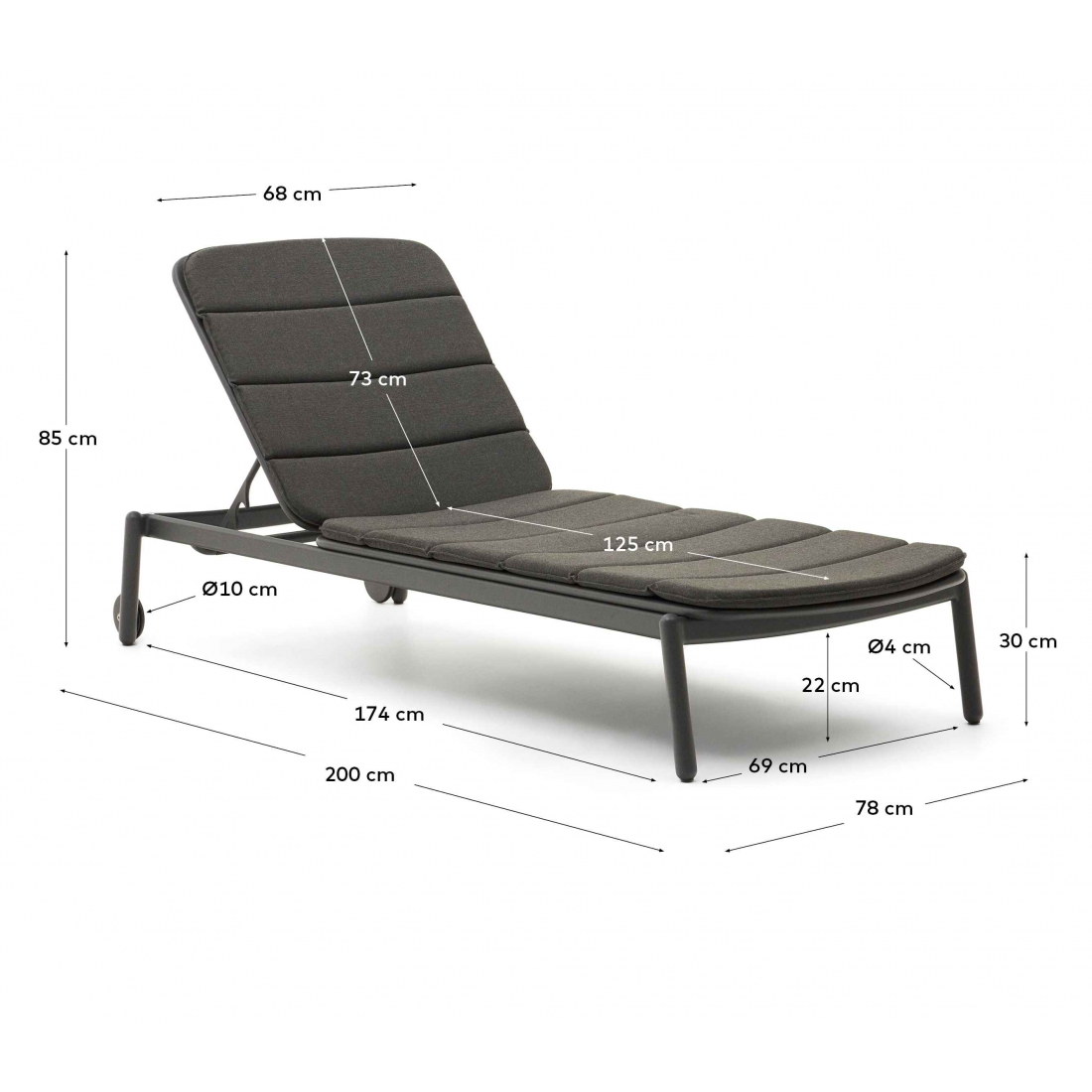 Hliníkové lehátko Marcona. Nastaviteľné operadlo so 4 polohami pre väčšie pohodlie. Vhodné na vonkajšie použitie a obsahuje vankúšik. S kolieskami pre ľahkú prepravu. Vhodné do vnútorných a vonkajších priestorov.
