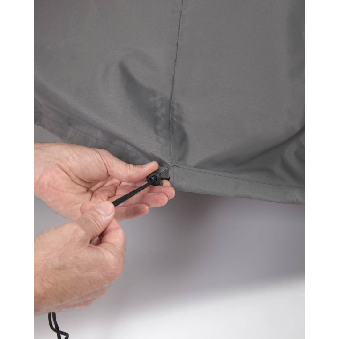 Ochranný poťah Iria na okrúhle vonkajšie stoly alebo nábytok. Poťah na okrúhly vonkajší stôl s izolovanými švami a vetracím okienkom na elimináciu kondenzácie. Postarajte sa o svoj vonkajší nábytok s týmto špeciálne navrhnutým vodeodolným poťahom, ktorý chráni pred dažďom a slnkom bez toho, aby nábytok zafarbil. Nastaviteľný systém v spodnej časti krytu znamená, že sa ľahko zmestí na akýkoľvek okrúhly stôl s rozmermi až 130 x 130 cm. Dostupné v rôznych veľkostiach, takže ich môžete kombinovať alebo nájsť tú, ktorá je pre vás tá pravá.