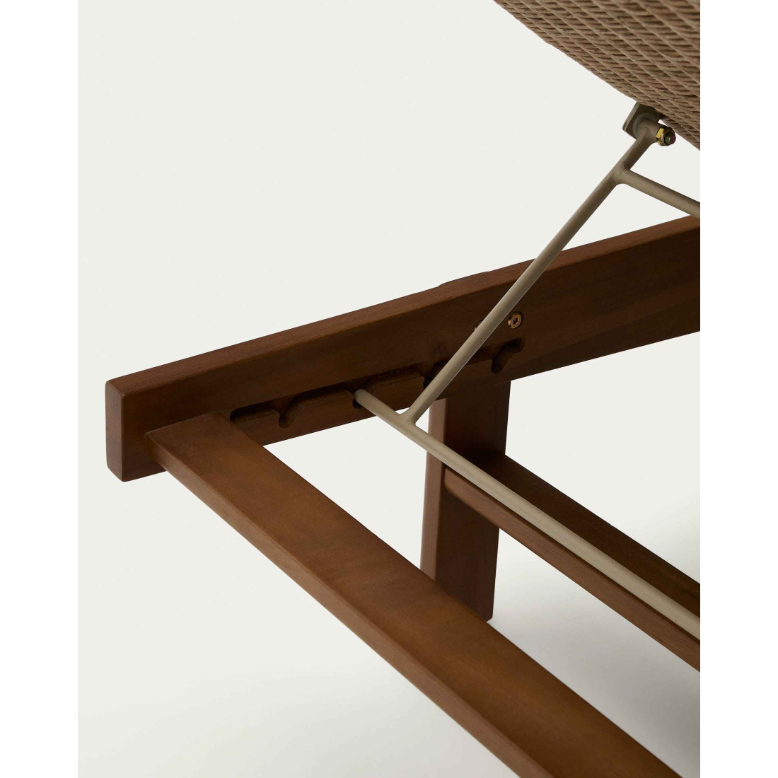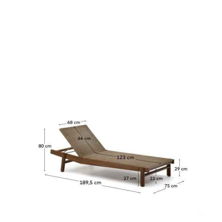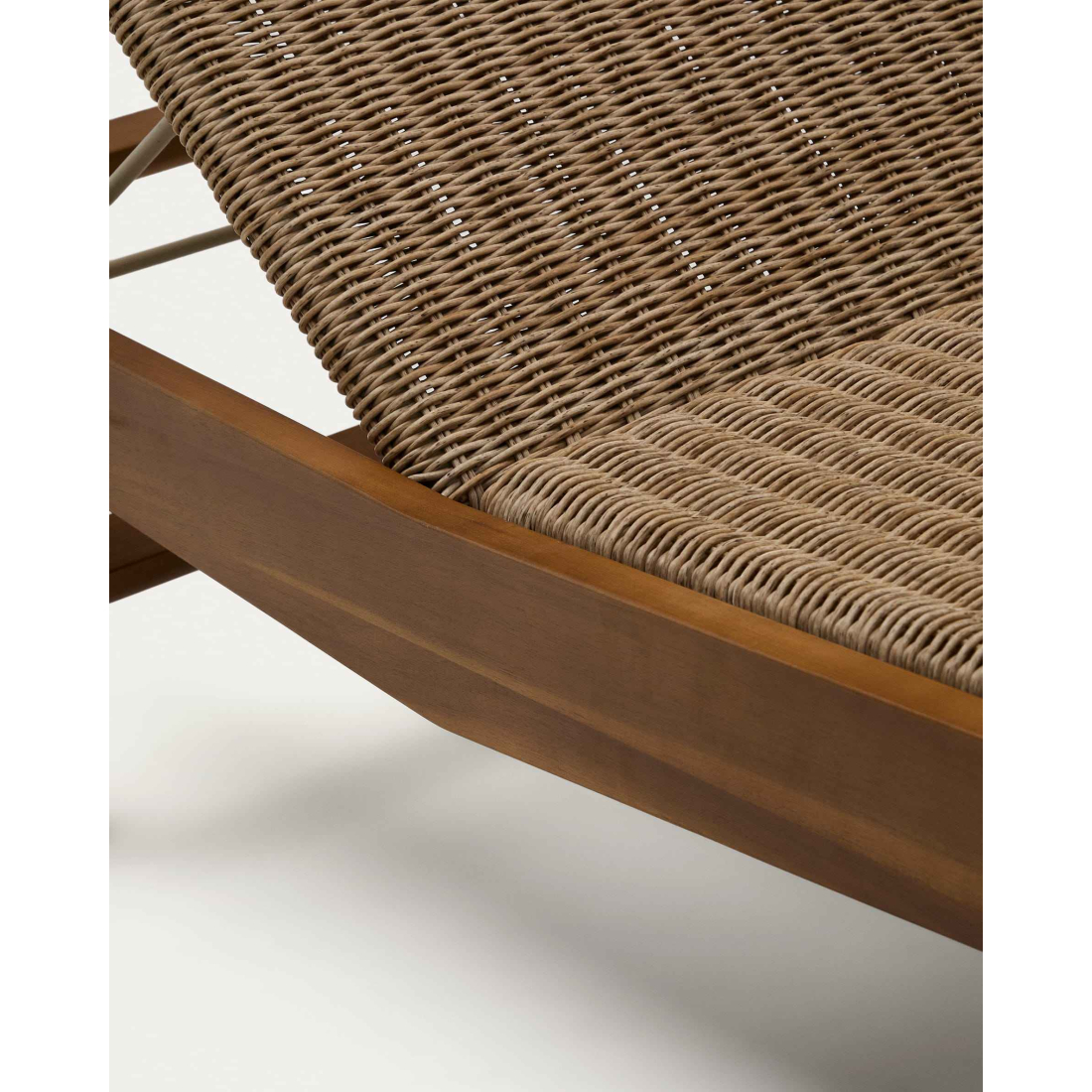 Itani ležadlo so štruktúrou vyrobenou z pevného dreva Acacia, takže každý kus bude mať svoje vlastné tóny a zrno. Sedadlo a operadlo vyrobené z ručne tkaného syntetického ratanu. Emuluje prirodzený vzhľad prútia, je odolný voči počasiu a ľahko sa čistí. FSC 100%™ reťazec dreva certifikovaného úschovy a zodpovedný model riadenia lesov. Aby ste tento kus udržali v perfektnom stave, naneste aspoň raz ročne ochranu na drevo. Vhodné na použitie v interiéri a vonkajšie použitie. Vhodné pre vnútorné a vonkajšie použitie.