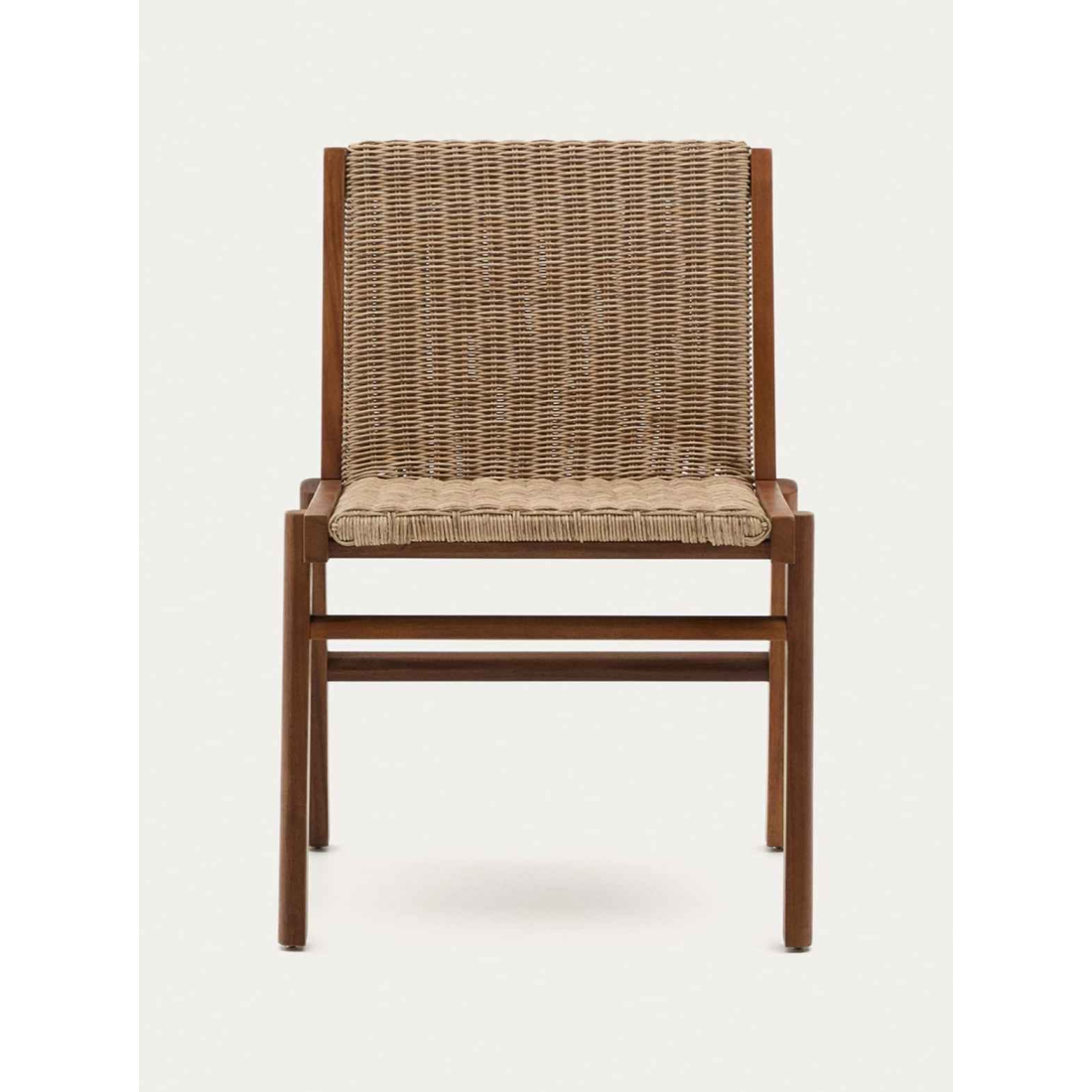 Stolička s pevnou štruktúrou dreva Acacia, takže každý z nich bude mať svoje vlastné tóny a zrno. Sedadlo a operadlo vyrobené z ručne tkaného syntetického ratanu. Emuluje prirodzený vzhľad prútia, je odolný voči počasiu a ľahko sa čistí. FSC 100%™ reťazec dreva certifikovaného úschovy a zodpovedný model riadenia lesov. Vhodná pre vnútorné a vonkajšie použitie.