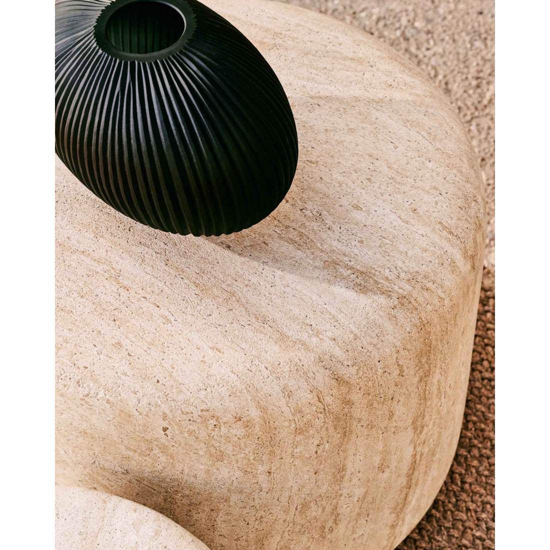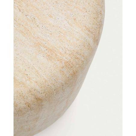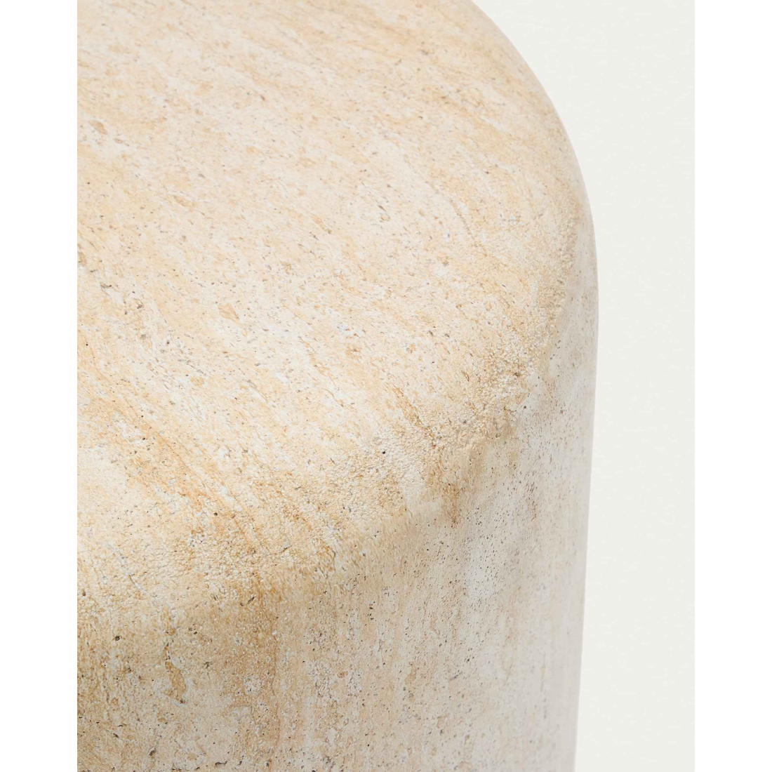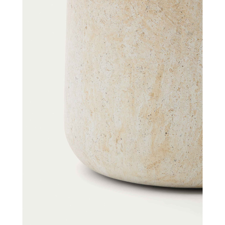 Cementový príručný stolík s povrchovou úpravou travertínu. Každý kus bude exkluzívny, s vlastnými tónmi a textúrami. Vzhľadom na zmeny povahy a teploty môže cement obsahovať mikro-trhlinky a nezrovnalosti, ktoré neovplyvňujú integritu produktu. Vhodný pre vnútorné a vonkajšie kryté použitie.