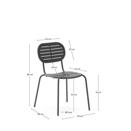 Stohovateľná stolička vyrobená z pozinkovanej ocele s povrchom, odolným voči hrdze a korózii, odolnejšie ako obyčajná oceľ. Vhodná pre vnútorné a vonkajšie použitie.