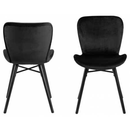 BATILDA VELVET BLACK je moderná škandinávska stolička čalúnená v zamate. Nohy sú z kaučukového dreva v čiernej farbe a sú ošetrené olejom.
