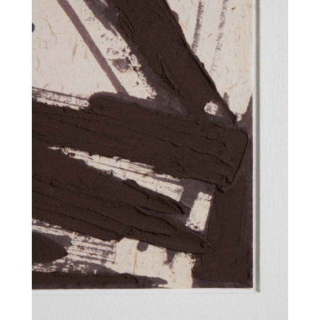 Obraz Arilan je ručne maľovaný abstraktný obraz s paspartou a rámom. Vyznačuje sa výraznými ťahmi štetca a dynamickou kompozíciou, ktorá dodáva priestoru pohyb a hĺbku. Každý kus je originál s jemnými odchýlkami a súčasťou je aj vešiak na jednoduché zavesenie na rôzne typy stien. Má D-krúžky na zavesenie, aby ste mohli háčiky umiestniť podľa typu steny. Dá sa kombinovať so zvyškom kolekcie.