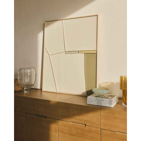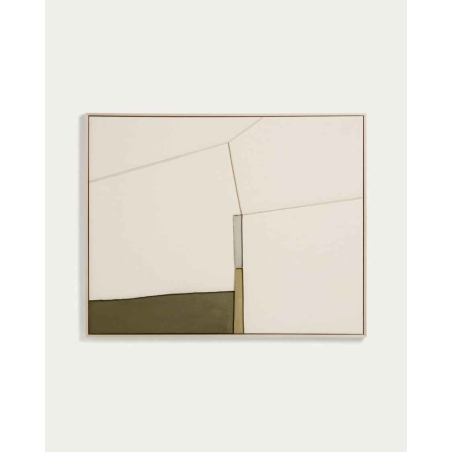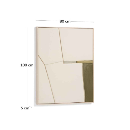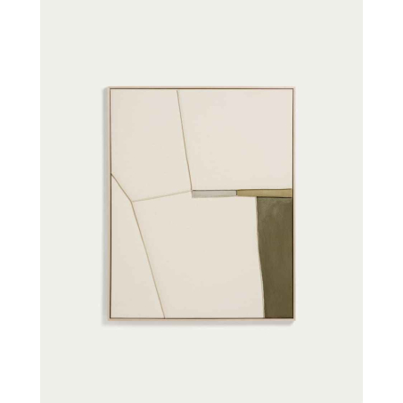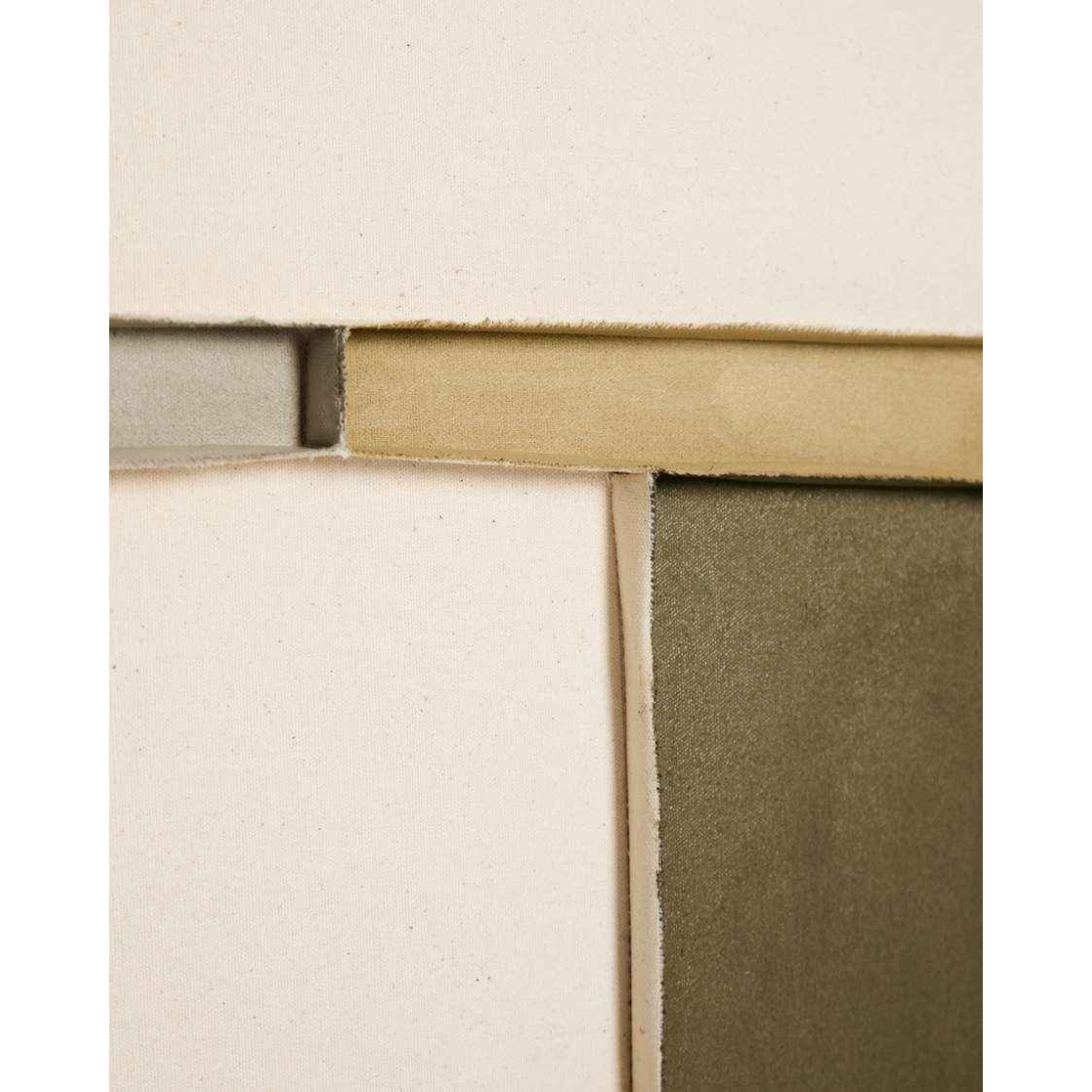 Obraz DERAVIA je abstraktný dekor s ľanovými reliéfmi, kombinujúci odtiene béžovej, sivej a zelenej pre harmonický a upokojujúci vzhľad. Jemná farebná paleta spolu s plastickou štruktúrou prináša do priestoru vizuálnu hĺbku bez narušenia jeho rovnováhy. Každý kus obsahuje rám a vešiak s D-krúžkom, vďaka čomu sa ľahko prispôsobí rôznym typom stien. Dá sa kombinovať so zvyškom kolekcie.