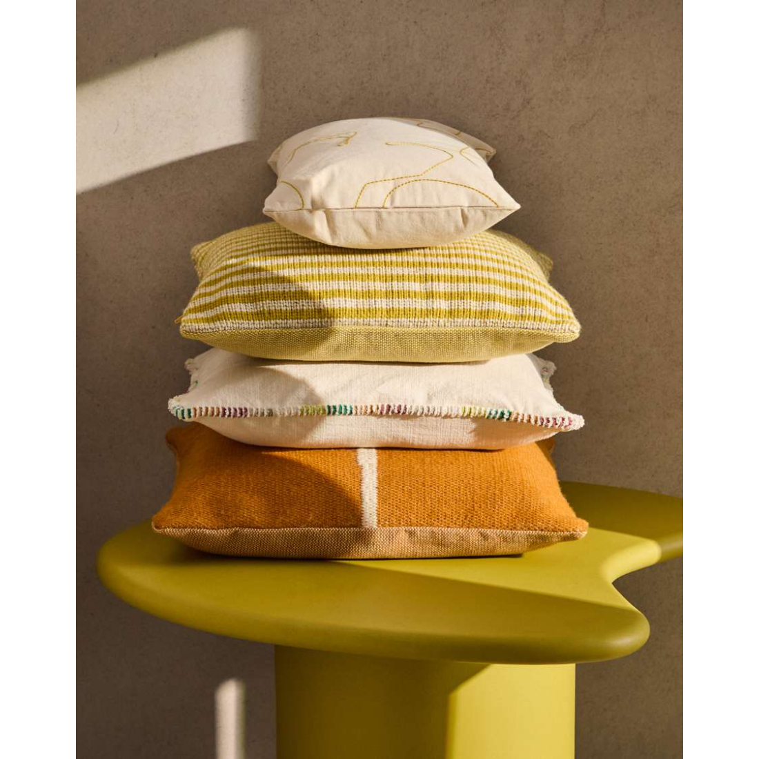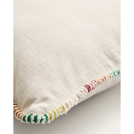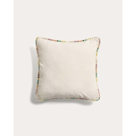 Béžová obliečka na vankúš ENARI zo 100% bavlny s kontrastným farebným lemovaním. Tento poťah na vankúš prináša dotyk sofistikovanosti do každej miestnosti vďaka bavlnenej tkanine bouclé, ktorá vyniká svojou bohatou, obklopujúcou textúrou. Kontrastný detail ručnej aplikácie z neho robí jedinečný dekoratívny prvok. Jeho štvorcový formát je ideálny na vytváranie kompozícií na pohovkách, kreslách alebo posteliach, poskytuje vizuálne teplo a extra pohodlie. Bavlna ponúka jemnosť na dotyk a pevnosť, čo zaisťuje, že poťah si zachová svoj bezchybný vzhľad po každom použití. Výplň nie je súčasťou balenia.