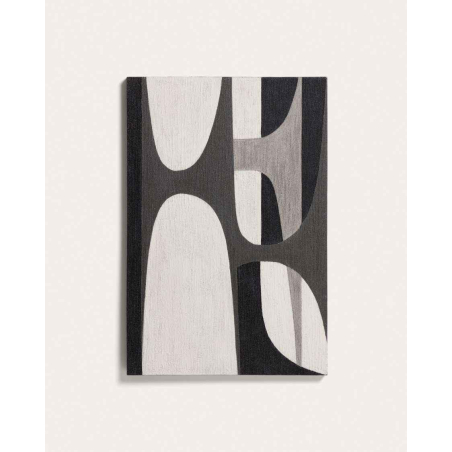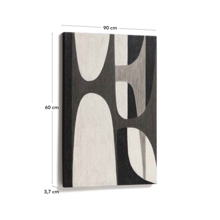 Abstraktný obraz ONURE so zaoblenými tvarmi. Skúma rovnováhu medzi čiernou a bielou cez zaoblené tvary, ktoré sa navzájom prekrývajú a dopĺňajú sa. Kompozícia je postavená zo svetlých a tmavých kontrastov, ktoré dodávajú hĺbku a prítomnosť. Obsahuje vešiak s D-krúžkom, ktorý sa prispôsobí rôznym typom stien a uľahčí zavesenie. Dá sa kombinovať so zvyškom kolekcie.
