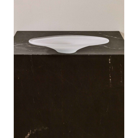 Sklenená ozdobná miska VIONZE. Kolekcia ozdobných prvkov Vionze vyniká svojimi plynulými líniami a zaoblenými tvarmi, ktoré sú navrhnuté tak, aby priniesli harmóniu a sofistikovanosť do každého prostredia. Každý kus je vyrobený zo skla pomocou ručne fúkaného procesu, ktorý zaisťuje, že každý vrchol je jedinečný, s neopakovateľnými nuansami a detailmi v jeho povrchovej úprave. Jas a priehľadnosť skla zvyšujú jas priestoru.