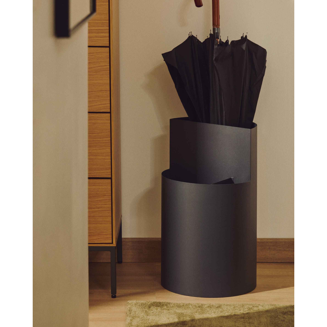 Kovový stojan na dáždniky ATIN. Kombinuje odolnosť a funkčný dizajn, vďaka čomu je nevyhnutným doplnkom pre vstup do akéhokoľvek domova alebo komerčného priestoru. Robustná konštrukcia zaisťuje stabilitu a trvanlivosť, zatiaľ čo vnútorná sieťovina umožňuje ľahké odvádzanie vody z dáždnikov, čím vždy udržiava interiér suchý a uprataný. Odnímateľný spodný zásobník zachytáva nahromadenú vodu a uľahčuje čistenie, čím zabezpečuje rýchlu a jednoduchú údržbu. Má dve rôzne úrovne, špeciálne navrhnuté na usporiadanie dáždnikov rôznych veľkostí, dlhých aj skladacích, čím sa optimalizuje dostupný priestor a zabráni sa neporiadku. Praktický a elegantný kúsok, ktorý je navrhnutý tak, aby udržal vchod bez škvŕn a ponúkol efektívne riešenie v daždivých dňoch.