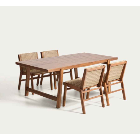 Súprava ITANI pozostáva zo stola a 4 stoličiek z masívneho agátového dreva s certifikáciou FSC, doplnených o sedadlá a operadlá z ručne tkaného syntetického ratanu. Agátové drevo vyniká pevnosťou, odolnosťou voči vlhkosti a prirodzenou kresbou, vďaka ktorej je každý kus jedinečný. Stoličky poskytujú pohodlie a praktickosť vďaka syntetickému ratanu, ktorý je odolný voči UV žiareniu a jednoducho sa udržiava. Súprava je vhodná na interiérové aj kryté exteriérové použitie a pre zachovanie vzhľadu dreva sa odporúča pravidelná údržba ochranným prípravkom. Kolekcia spĺňa náročné testy odolnosti, čo zaručuje jej dlhú životnosť aj pri intenzívnom používaní.