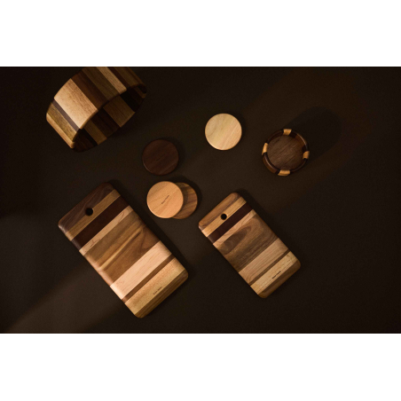 Servírovacia doska NOVER vyrobený z kombinácie viacerých drevín. Každý kúsok je exkluzívny, s vlastnými zrnami a odtieňmi, ktoré mu dávajú jedinečný charakter. Funkčné a dekoratívne kúsky, ideálne pre vašu kuchyňu a jedáleň.