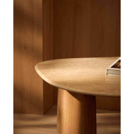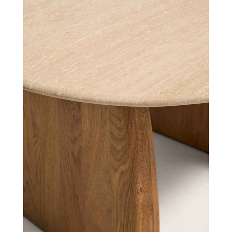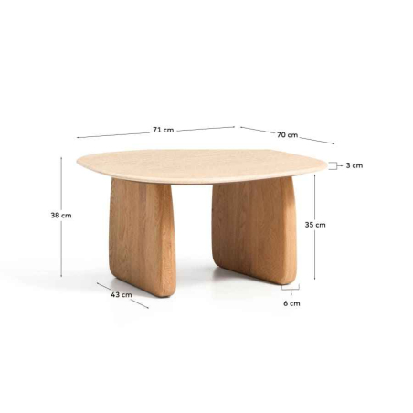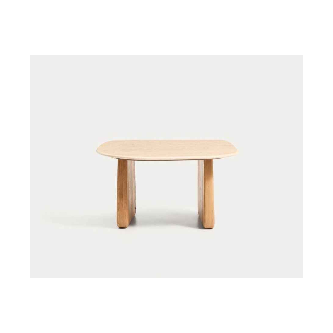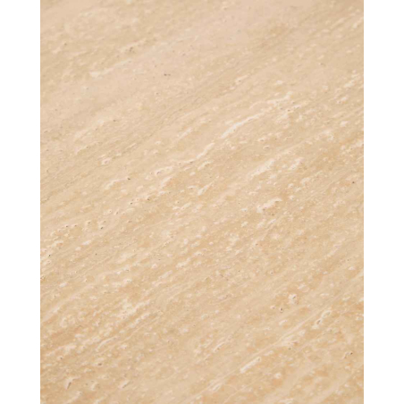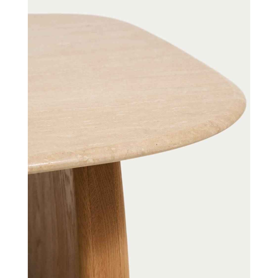 Príručný stolík PIRITA je vyrobený s travertínovou doskou a nohami z masívneho dubového dreva, ktoré zaisťujú stabilitu a prirodzený vzhľad. Vyniká organickými tvarmi a vyváženými proporciami, pričom travertín dodáva každému kusu jedinečný charakter vďaka prirodzeným pórom a jemným nepravidelnostiam. Nastaviteľné nohy umožňujú prispôsobenie nerovnostiam podlahy a zabezpečujú stabilitu pri každodennom používaní. Možno ho kombinovať s ďalším stolíkom z kolekcie a vytvoriť praktickú zostavu v dvoch výškach.
