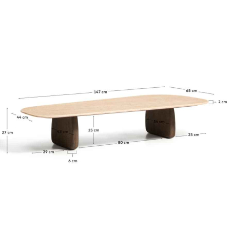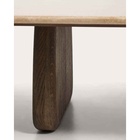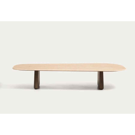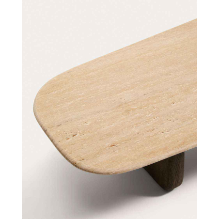 Konferenčný stolík PIRITA je vyrobený s travertínovou doskou a nohami z masívneho dubového dreva, ktoré zaisťujú stabilitu a prirodzený vzhľad. Vyniká organickými tvarmi a vyváženými proporciami, pričom travertín dodáva každému kusu jedinečný charakter vďaka prirodzeným pórom a jemným nepravidelnostiam. Nastaviteľné nohy umožňujú prispôsobenie nerovnostiam podlahy a zabezpečujú stabilitu pri každodennom používaní. Možno ho kombinovať s ďalším stolíkom z kolekcie a vytvoriť praktickú zostavu v dvoch výškach.