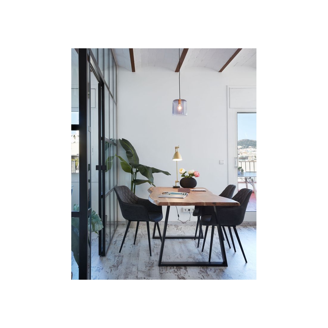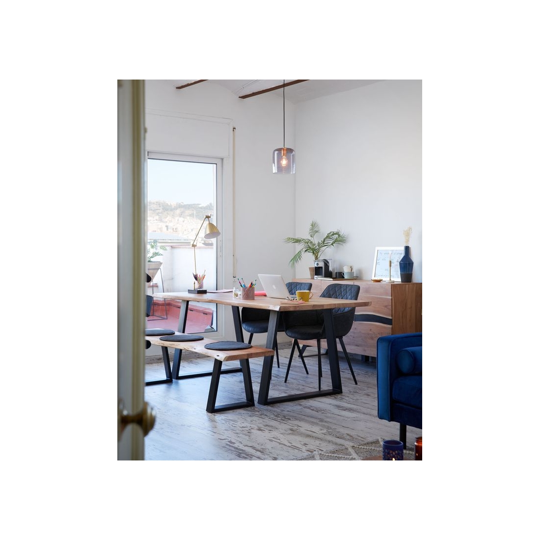 Pracovný stôl TALBOT s povrchovou úpravou MDF s prírodnou farbou a kovovou farbou. Výška: 76 cm.