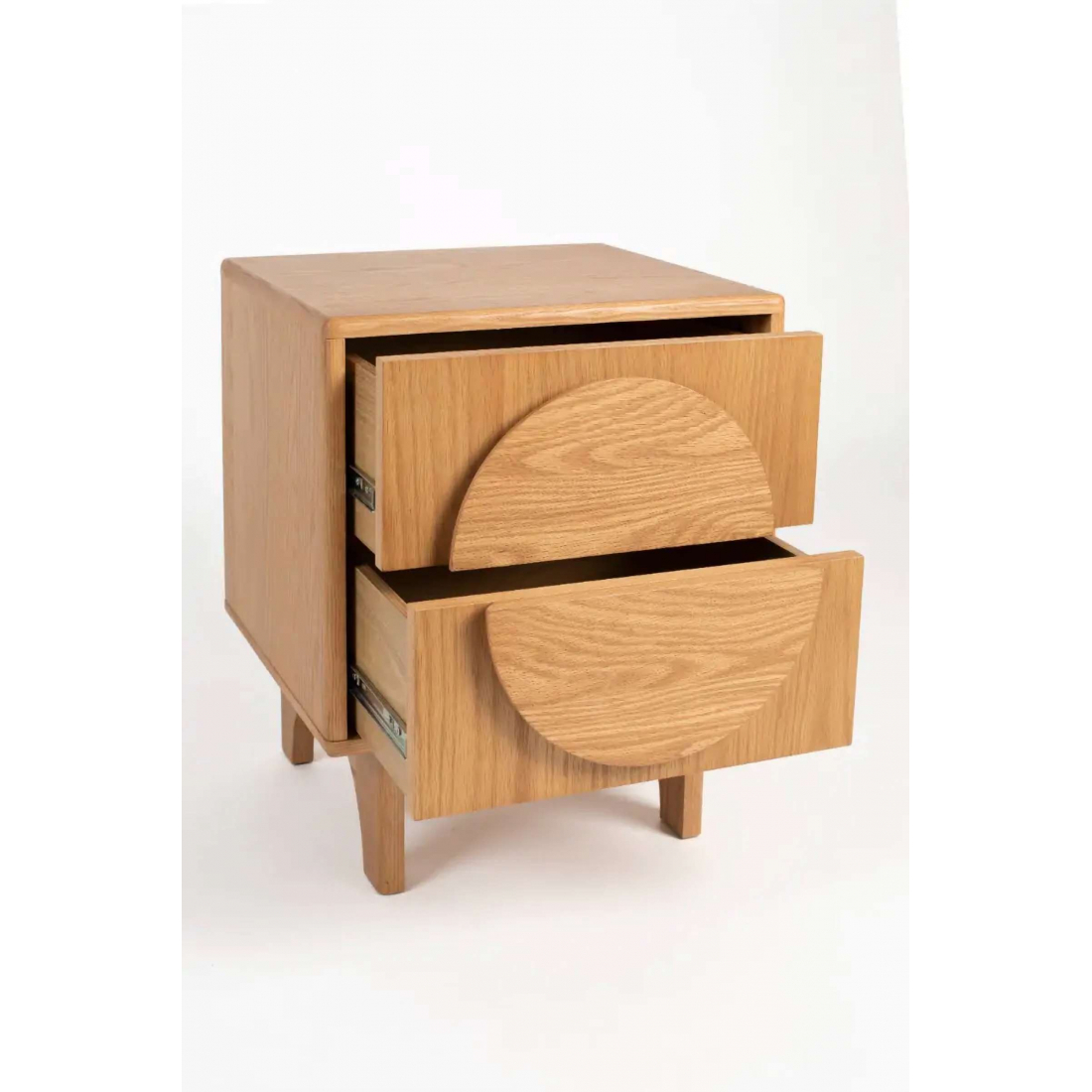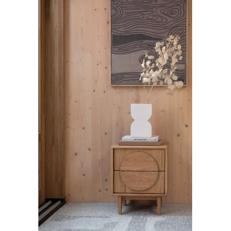 Zoznámte sa so stolíkom Groove z dubu – zmes modernej elegancie a funkčnosti! Tento výnimočný príručný stolík je súčasťou kolekcie Groove a na prednej strane sa vyznačuje podmanivým kruhovým dizajnom. V krásnom dubovom alebo v tmavom orechovom prevedení dodá vášmu priestoru nádych modernej elegancie. Vďaka dvom praktickým zásuvkám poskytuje štýl aj pohodlie.