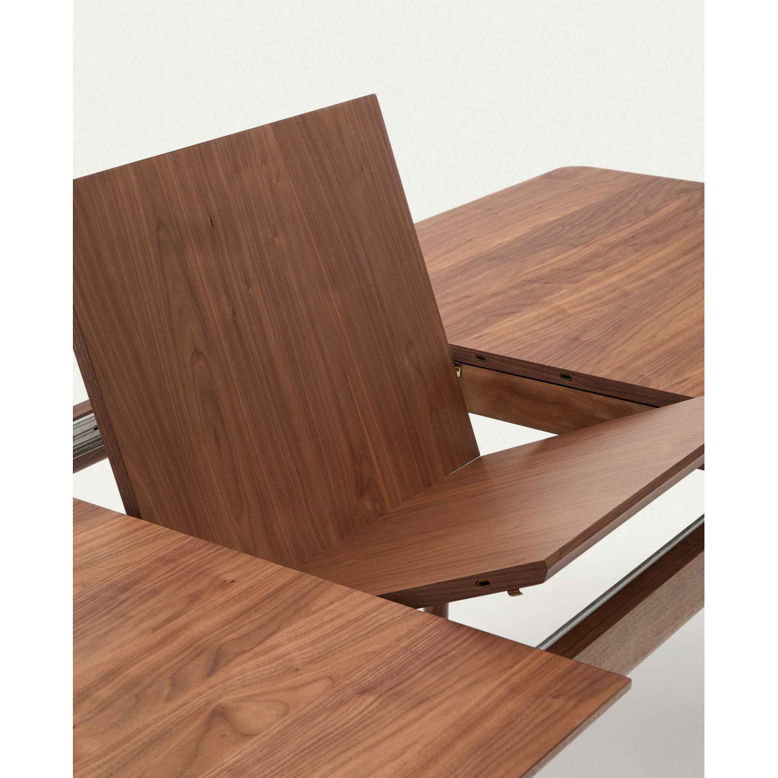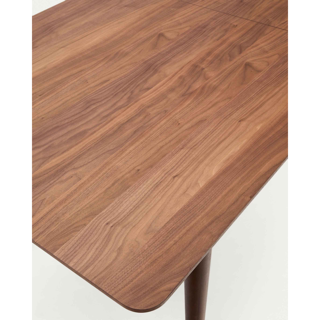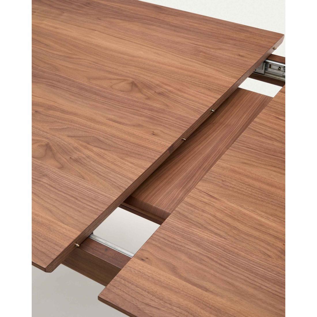 Rozťahovací stôl Elan z dyhy a masívneho orechového dreva. Každý kus je nádherne vypracovaným umeleckým dielom, kde ručne tkané detaily šnúry dodávajú vašim priestorom nádych rustikálnej elegancie. Ľahký otvárací mechanizmus motýlika. Obsahuje 60 cm dosky skryté vo vnútri stola. S nastaviteľnými nožičkami, aby sa predišlo nerovnostiam. Sofistikovaný tenký dizajn s detailom priečky na nohách.