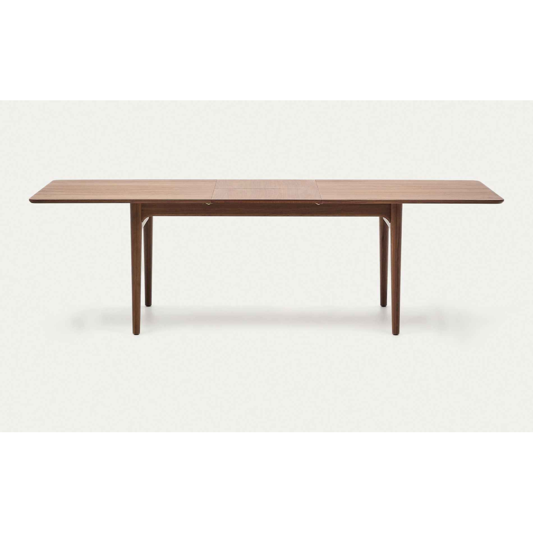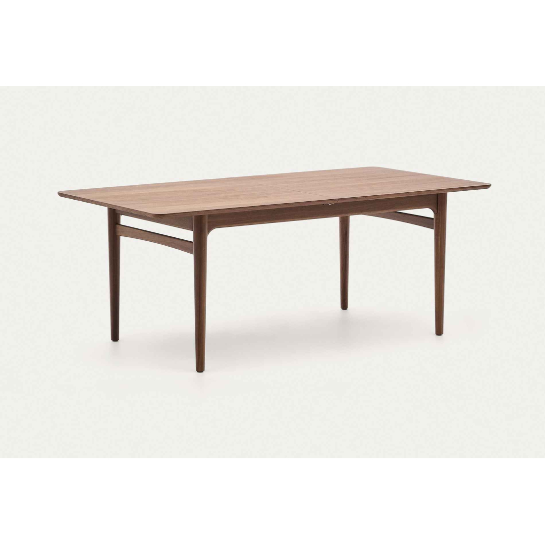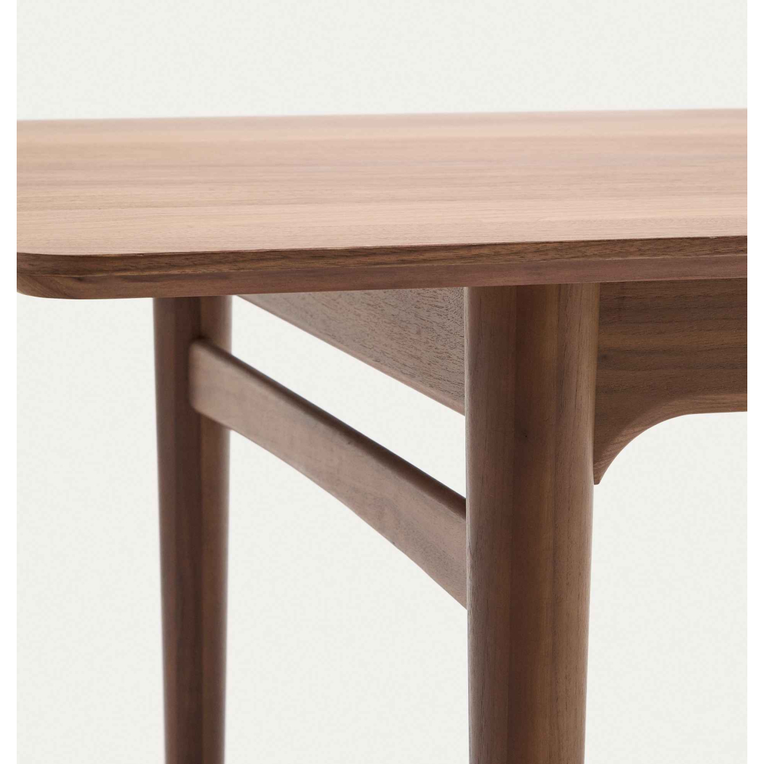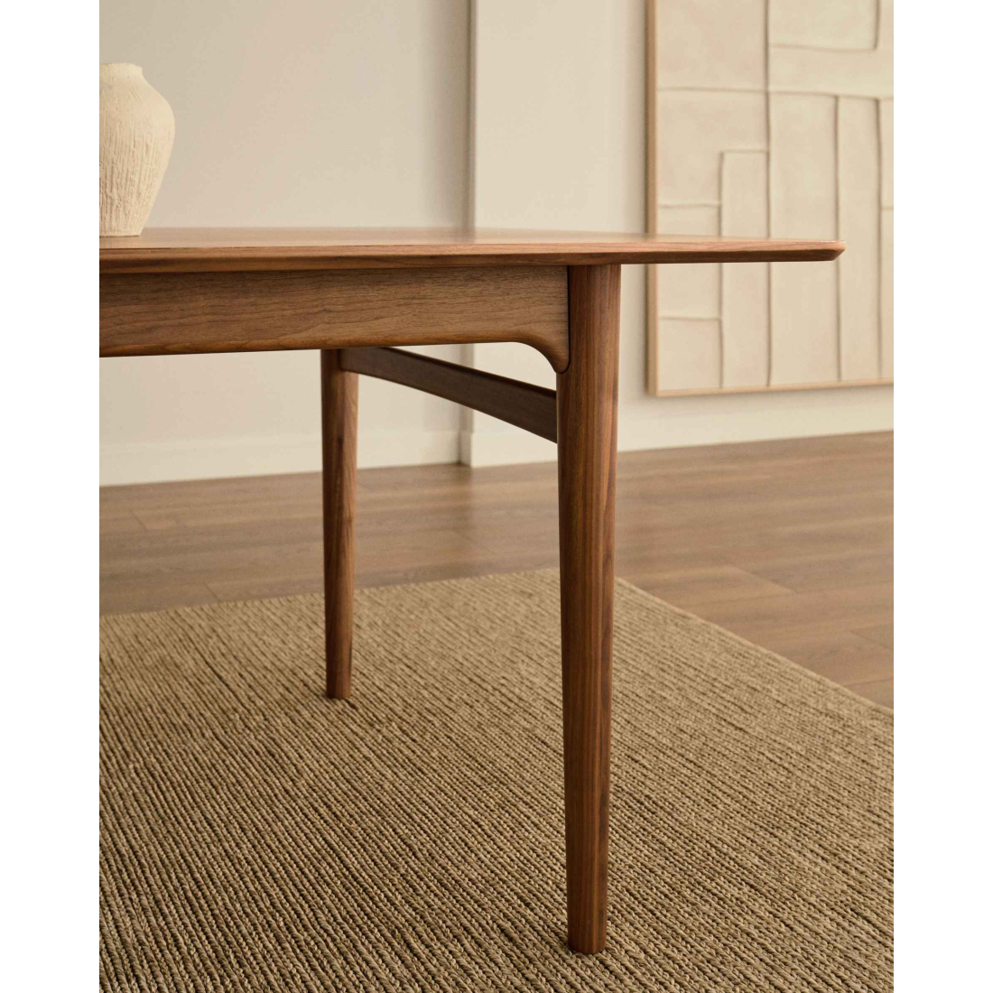 Rozťahovací stôl Elan z dyhy a masívneho orechového dreva. Každý kus je nádherne vypracovaným umeleckým dielom, kde ručne tkané detaily šnúry dodávajú vašim priestorom nádych rustikálnej elegancie. Ľahký otvárací mechanizmus motýlika. Obsahuje 60 cm dosky skryté vo vnútri stola. S nastaviteľnými nožičkami, aby sa predišlo nerovnostiam. Sofistikovaný tenký dizajn s detailom priečky na nohách.