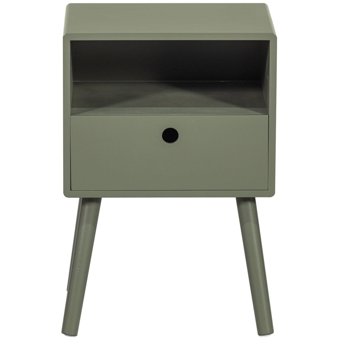 Nočný stolík OZZY s minimalistickým dizajnom, vyrobený z lakovanej MDF v čiernej a zelenej povrchovej úprave. Použitie lakovaného MDF dreva zaisťuje, že nočný stolík vyžaruje pokoj a ľahko zapadne do štýlu vašej spálne. Materiál MDF dosky v našich kolekciách je vytvorený z lisovaných drevných vlákien, ktoré sú pod tlakom lepené pomocou živice. Vďaka tomu má tento materiál veľmi hladký povrch.