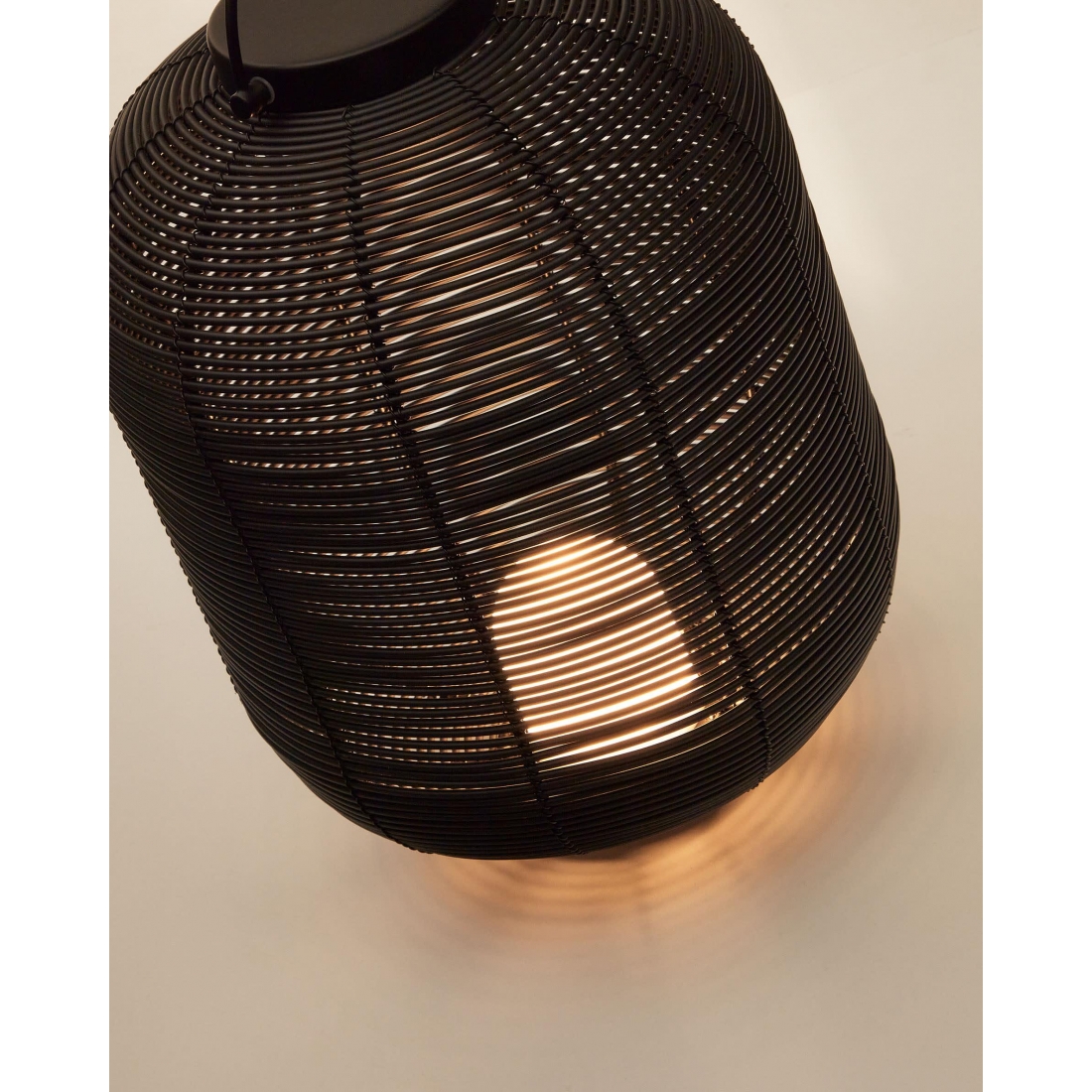 Prenosná stolová lampa Saranella z čierneho umelého ratanu. Chcete mať svetlo po ruke bez toho, aby ste boli závislí od nástenných vypínačov a zástrčiek? Prenosná lampa s dvomi úchytmi na zavesenie v dvoch polohách. Nabíjateľné teplé LED svetlo s priloženým USB nabíjacím káblom. Vyberte si dokonalé svetlo vďaka jeho trom intenzitám. Vhodná pre vnútorné aj vonkajšie použitie.