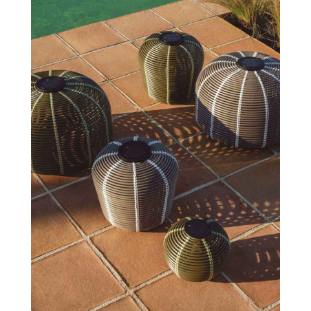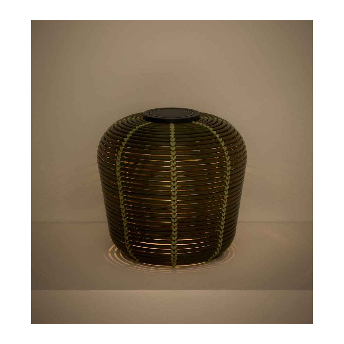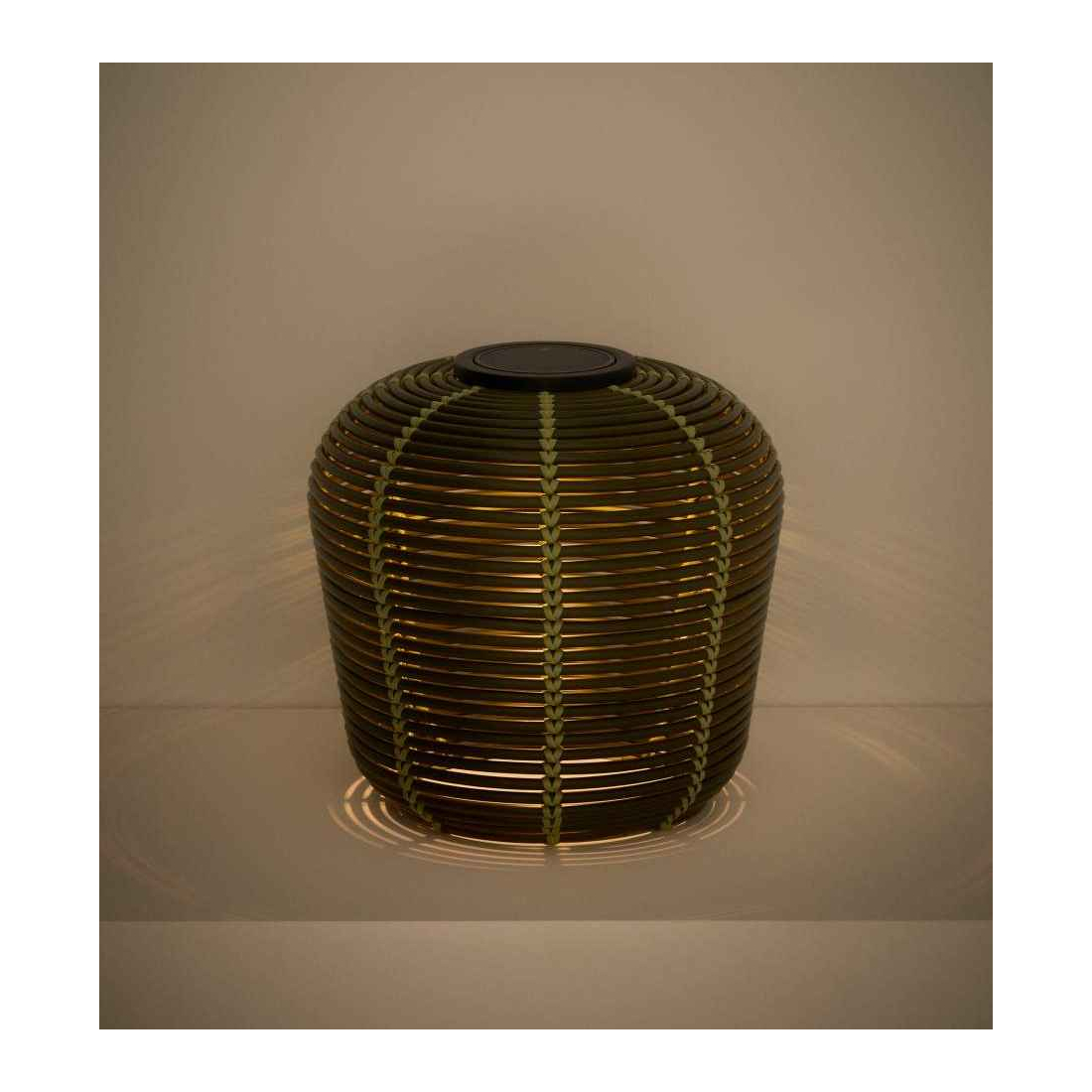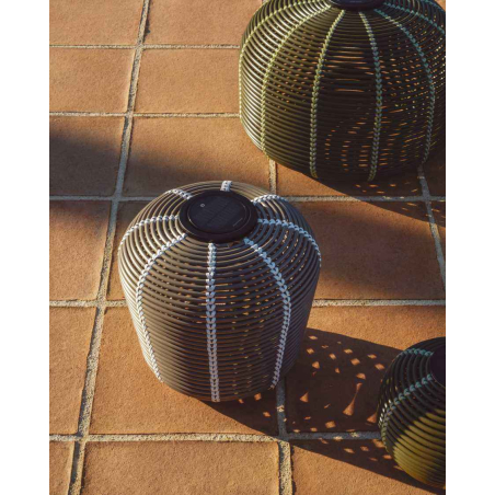 Prenosná solárna stolná lampa GAROINA je vyrobená zo syntetického ratanu. Lampa využíva LED technológiu a vytvára príjemnú, teplú atmosféru vďaka štruktúre materiálu, ktorý jemne prepúšťa svetlo. Batériu je možné nabíjať solárne alebo cez USB-C a solárny panel je odnímateľný pre väčšie pohodlie. Súčasťou je aj diaľkový ovládač, pomocou ktorého možno regulovať intenzitu svetla a ovládať jednu alebo viac lámp naraz. LED komponent je vymeniteľný, čo predlžuje životnosť lampy a uľahčuje údržbu. Lampa má krytie IP65, takže je navrhnutá na vnútorné aj vonkajšie použitie.