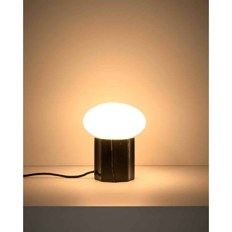 Stolová lampa IDELA kombinuje dymové sklo a mramor, dva materiály, ktoré poskytujú kontrast a pevnosť. Mramor má variácie zrna a tónu, vďaka ktorým je každý kúsok jedinečný. Tienidlo rozptyľuje svetlo mäkkým a rovnomerným spôsobom a vytvára osvetlenie navrhnuté tak, aby poskytovalo priestor teplo. Idela môže byť pridaná ako svetelný bod v obývačkách, jedálňach alebo čitárňach. Dá sa kombinovať so zvyškom kolekcie. Kompatibilný so žiarovkou E14 max. 40W nie je súčasťou balenia.
