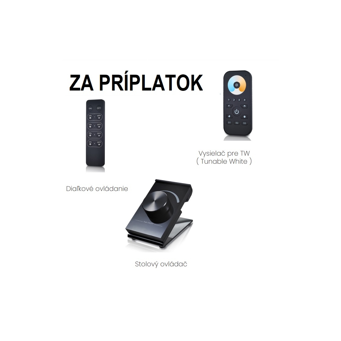 Možnosti regulácie - DALI, Bluetooth, Tlačítko, RF ovládač - za príplatok.