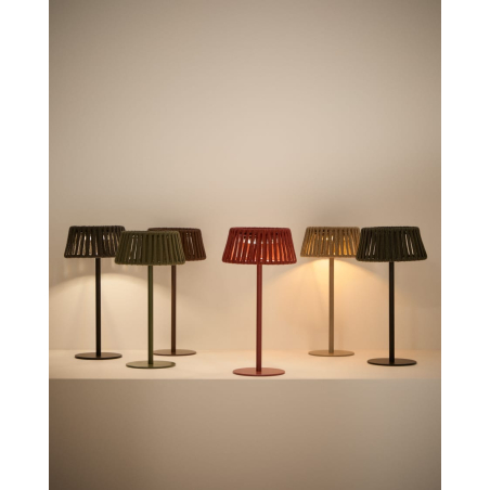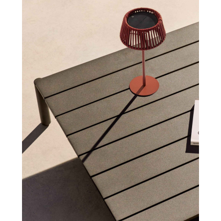 Prenosná solárna stolová lampa s lanom. Chránený IP44, vhodný na vonkajšie použitie. Integrované LED svetlo s neutrálnymi teplotami. Intenzita svetla nastaviteľná podľa tlačidla. S autonómiou 12/15/48 hodín v závislosti od intenzity svetla. Odhadovaný čas na celé nabíjanie je 1 deň so slnečným žiarením. K dispozícii vo viacerých farbách. Vhodná do vnútorných a vonkajších priestorov.